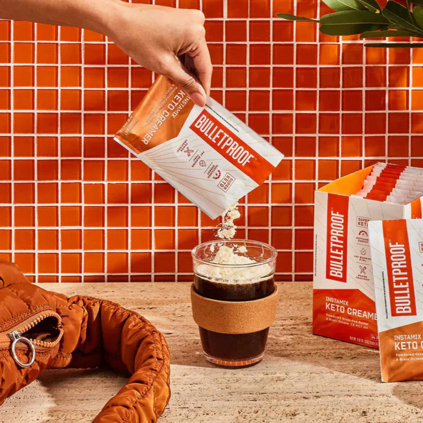 Get Bulletproof Coffee on-the-go with InstaMix Keto Creamer. This delicious, smooth keto creamer has grass-fed butter and MCT oil. All you have to do is add one packet to your coffee and froth. When the quality fats blend with your brew, you get a satisfying coffee that supports sustained energy and brain function while reducing cravings. It's the perfect way to start your day.